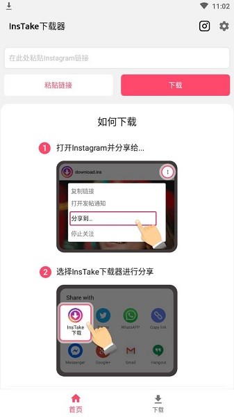instake下载器实际操作简易,不用新用户注册账户登录,而且手机软件归还客户给予了操作步骤和流程,客户只须把自己要想的视频和图片的连接键入到手机软件中就可以开展下载了。