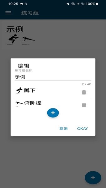 该应用程序允许您为循环训练创建自己的练习集。因此,你可以将你自己的练习结合到练习组中。分配给某个练习的图像会在训练中显示。此外,练习组可以在训练中重复。为此,你可以在开始训练前设置回合数。