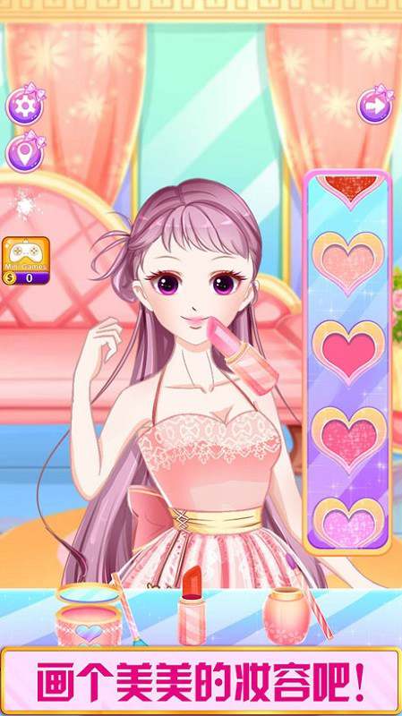 到里你向我们展示你的化妆和装扮技能的时候了。我们已经准备各种各样的化妆品和漂亮的衣服,向我们展示你能把公主变得多美吧。相信在你的帮助下,公主会和王子有一个愉快的约会。