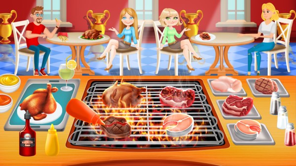 欢迎来到烧烤餐厅,免费提供时间管理的烧烤烹饪游戏。你是否喜欢在世界美食餐厅做主厨?那么在这个厨房食品制造商的游戏,你可以在流行的烧烤店工作,该店正在镇上开设的新餐厅。客户在开幕式上向朋友和家人举办烧烤派对。餐厅经理为饥肠辘辘的顾客和美食家做准备。在厨房冲洗,不要在供应烧烤菜肴时争抢。及时为客户提供完美的菜肴,以满足他们的饥饿感并获得最佳提示。