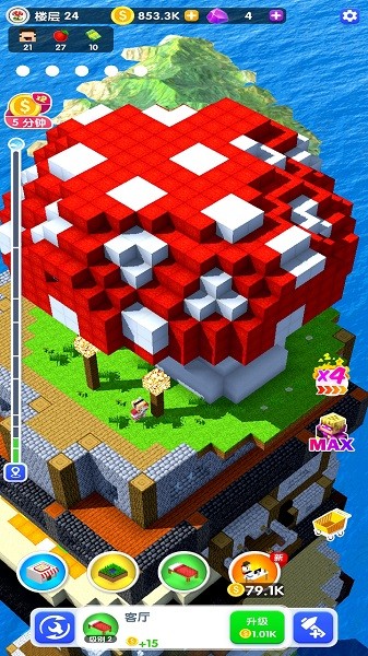 *游戏画面非常丰富,多种颜色的建造材料差别很大。