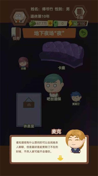 2、玩家在不断地模拟退休的生活的时候也将会改变老人的性格,不同的性格将会有着不同的人生。
