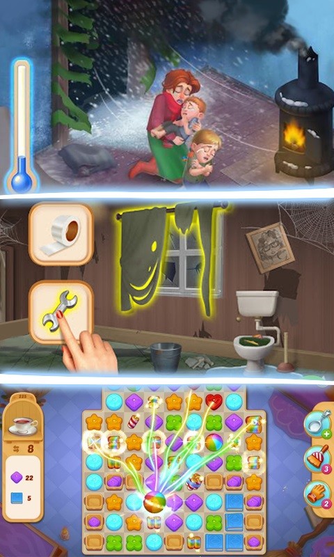 《房产清洗大师》是一款玩法新颖,结合了三消和装修经营的养成游戏。艾米丽和她的儿子单独在她的别墅里,因为他们是最近才搬进来的,所以有很多东西要修!