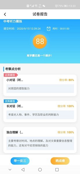 2、进行口语练习时,支持智能跟读,测一测个人说英语的能力;