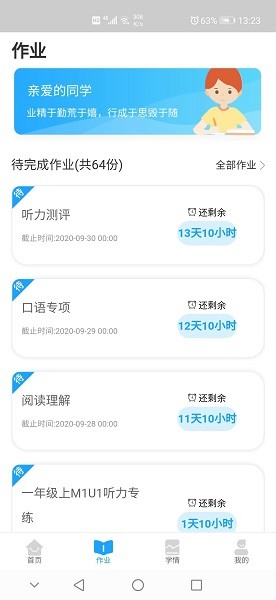5、查看教师布置的家庭作业,助力学生轻松完成习题练习;