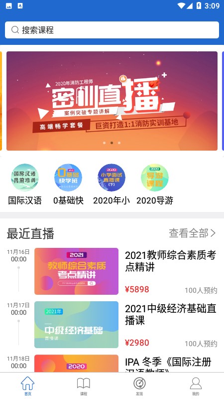 直播课程提醒,自己预约了直播课程的话可以提前获得上课时间的提醒;