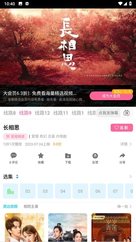 5、视频播放时支持离线下载和投屏播放,可以选择不同线路来观看