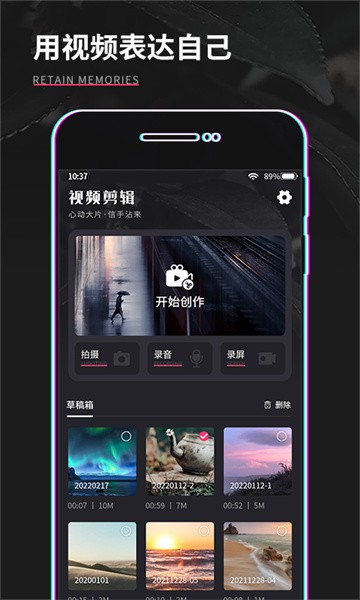 可用剪意直接拍摄视频,支持高清多段拍摄。轻松制作创意视频