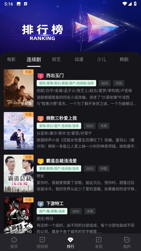 剧星视界app作为专门提供影视播放的应用软件,聚合全网资源,各种类型的电影、电视剧、综艺、动漫、少儿、韩剧、美剧影视随你选择,自由播放观看,智能推荐,还有短视频随你刷,同步更新,热门排行榜单一手掌握,多线路切换,舒适追剧!