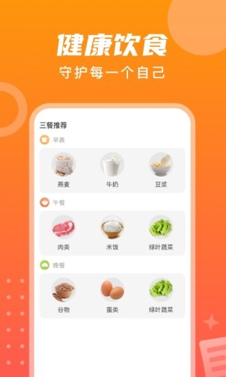 3、健康饮食:提供三餐推荐搭配,坚持记录每天摄入热量,保证健康饮食。