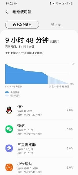 2、用户可以查看7天内手机的用电情况。省电功能会在用户睡觉时限制后台活动和cpu使用,以延长电池寿命。同时屏幕省电功能必须在每个应用程序的基础上启用,并会在你不使用手机时自动调整屏幕亮度。