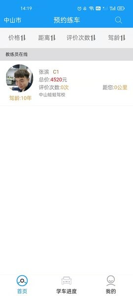 蛙蛙学车学员版app为学员用户提供了一站式的便捷学车服务,能够根据地理位置查看教练信息,能看到详细的价格,距离,所属驾校等信息,支持在线预约培训,可以看详细的学车进度,能够为教练的教学进行评价。