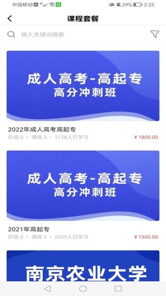进入课程版块,快速对课程进行筛选,通过关键词搜索各种课程信息