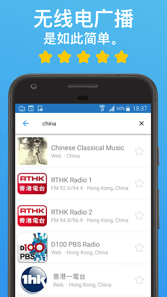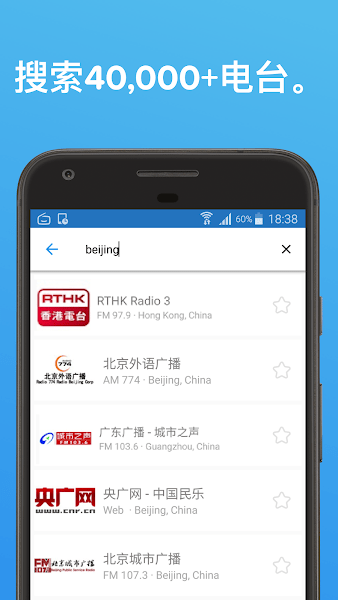 你可以很容易地找到全球著名的广播电台,每天都有更新的各种音频主题。每个电台可以为用户提供不同的主题,如流行音乐和摇滚乐等。不仅是音乐,该应用还为许多用户带来了许多有用的新闻,如国际新闻或体育。此外,您还可以通过所在城市或州的名称来搜索喜欢的类别。