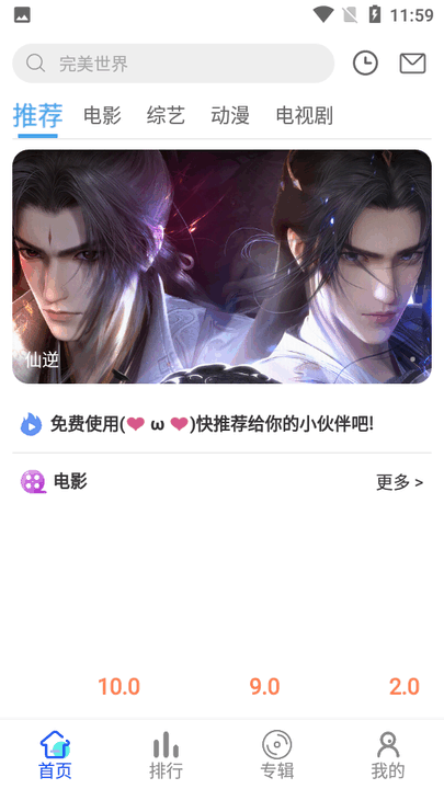 1、界面简洁舒适,为用户提供热门电影电视剧免费观看。