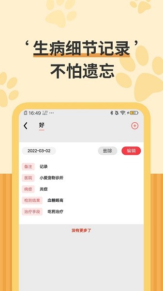 3、宠物信息实时更新,个性化管理宠物的健康成长。让养宠变得和谐、幸福、舒心;
