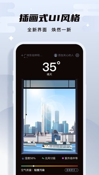 能实现精准定位、及时提醒的天气预报app。此外,还能实时监测阴晴雨雪,实现分钟级天气预报、公里级天气预报、逐小时的天气预报。同时,还能查询7日天气预报,5日空气质量预报。