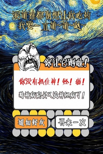 益智小游戏,玩家需在9x9的点阵中通过点击把神经猫围在一定区域内。《围住神经猫》是非常耐玩且虐心虐手虐眼的休闲益智类游戏,无节操神经猫晃瞎你的眼球。轻轻地挥动你的手指,让猫无路可逃!