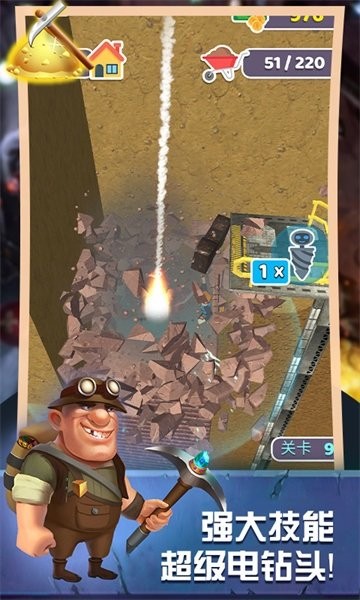 游戏里有很多任务可以完成,每次解锁新成就都很开心。特别是挖到稀有矿石的时候,那种兴奋感简直停不下来。升级基地和镐头也很有意思,看着自己的资源越来越多,城市的规模越来越大,真的很有满足感。