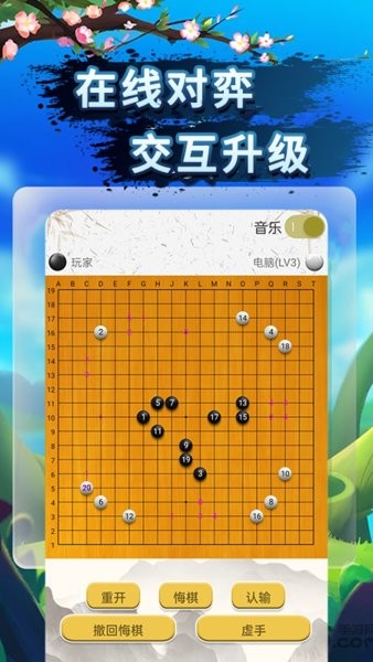 在线进行对弈的时候,播放古典的音乐,在宁静的氛围中,找到围棋的乐趣。