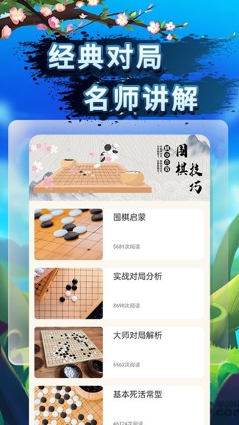 手机围棋类app,在这里用户们能够看到超多的围棋教学能容,从入门到基础,从基础到高深等等全都能够在这里找到!