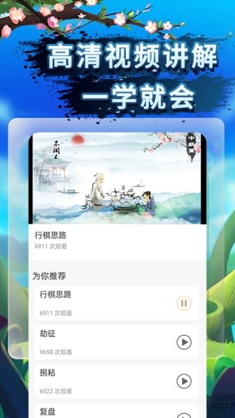 精选大师级经典对局视频,进行由浅入深通俗讲解,轻松掌握围棋对弈规则和棋艺技巧。