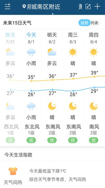 超长15天天气预测,预知晴雨为您的日常生活早做打算。