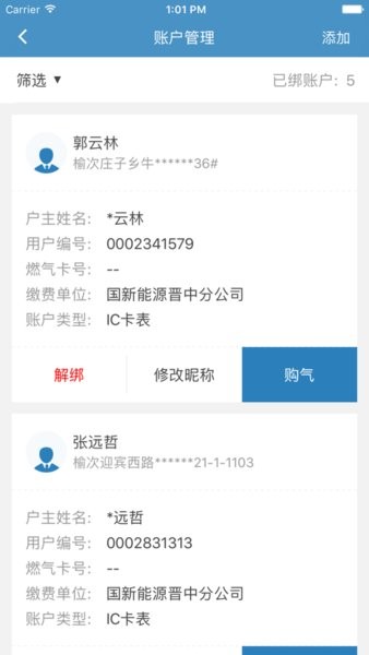 国新燃气宝安卓版app有非常详细的服务网点分布导航,能够查看详细的缴费历史账单,轻松绑定户号和进行账户管理,还能购气和解绑,可以通过读卡的方式来进行绑定,也可以直接输入卡号来绑定。