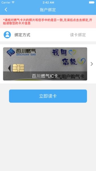 绑定账户(首次购气需要绑定):点击首页【账户绑定】图标,进行表具绑定