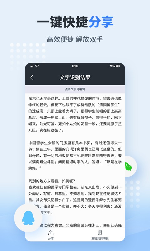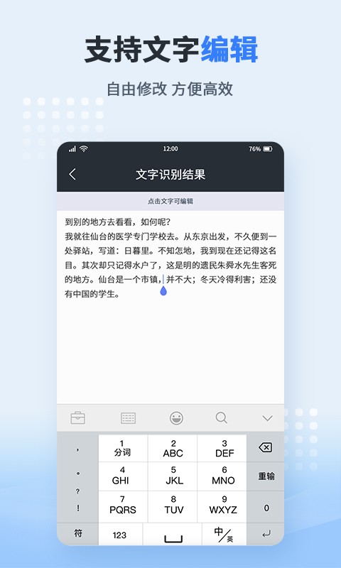 文档编辑导出,识别后的文字可进行自由编辑、复制等;
