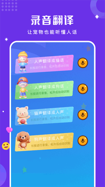 1、一款很好的宠物翻译软件,方便用户们互相沟通。