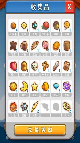 收集系统合成高级物品时会掉落收集物品,可用于解锁关卡,换取奖励,兑换皮肤等。