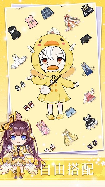 Q版的角色,令人心动的表情和数十种精美的服装可以自由搭配。还能制作壁纸贴图与你的可爱好友分享,快来开启你的服饰搭配奇迹梦想之旅吧!