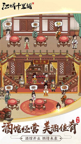江城十里铺游戏是非常好玩的一款古代背景的模拟经营手游,在这里玩家们需要扮演一个客栈酒家的掌柜,不断的吸引更多的顾客,让自己能够赚到超多的钱,解锁更多的菜谱和设施,扩大自己的经营规模,超级的好玩。