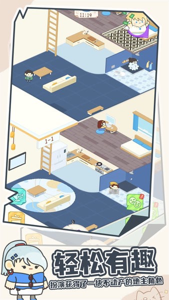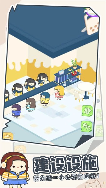 画风可爱的有趣休闲模拟经营类游戏。在游戏中,玩家代入成为包租婆,每天收租。当然还得获得租客的好评才能越来越多的人租你的房子。