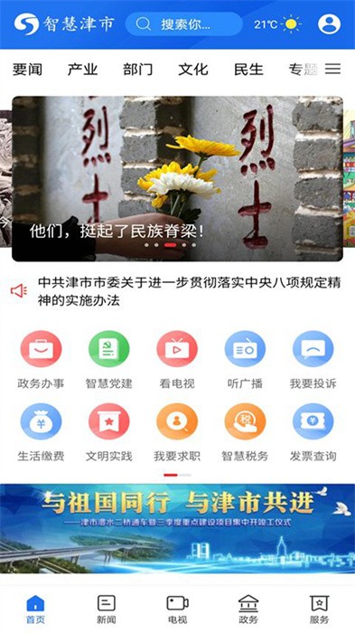 智慧津市app,一款专门为当地的人们打造的政务服务软件,以强大的网络技术为支撑构建了智能便捷的政务办公平台,用户可以在线查看本地资讯、最新政策、线上办理业务等,极大的拉近了民众和政府的距离,对于提高相关人员的工作效率有着很大的帮助,有需要的朋友快来下载用起来吧~