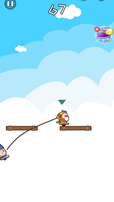 3、每点击屏幕一次,小猴子就会向前跳跃一段距离,按屏幕的时间越长,跳跃的距离也会越远,尤其考验你的感知以及细心能力。