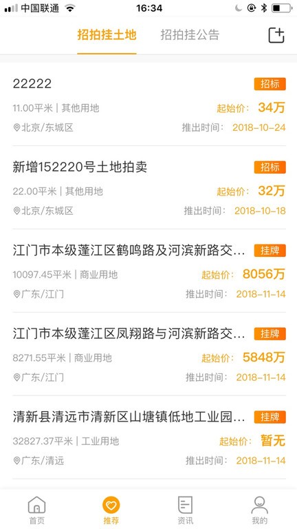 进入推荐页面,即可详细了解各个招拍挂的土地信息