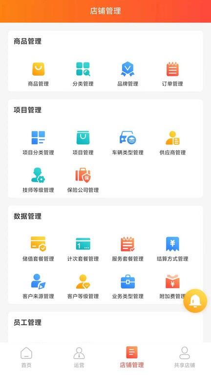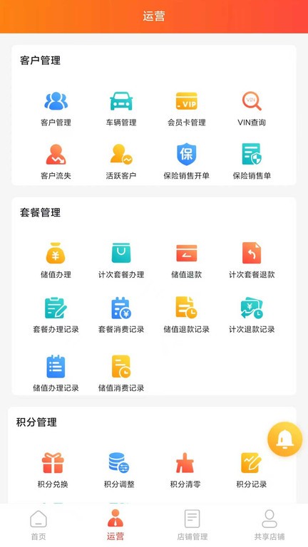 管理的分类也是非常多的,有着客户管理和套餐管理以及积分管理,帮助用户更好的管理店铺。