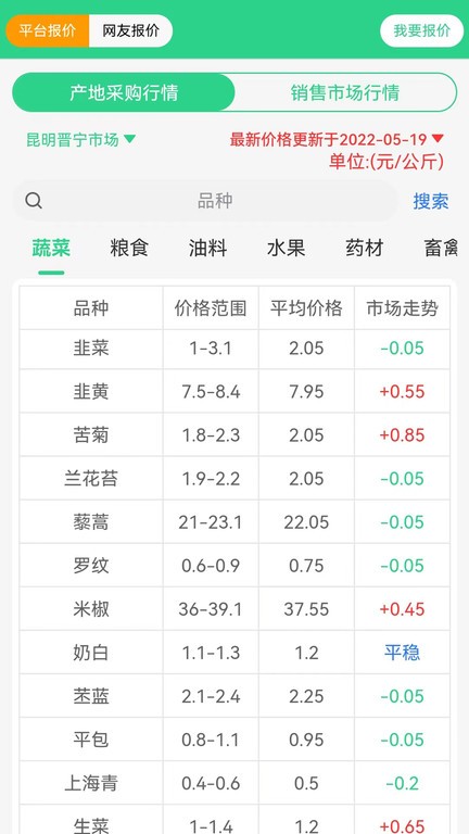 九农慧app最新版能够在手机上查看平台以及网友报价,采购行情销售行情及时知晓,农产品报价信息一目了然,还可以根据图片来识别农作物的病虫害,支持发布供需信息,供需双方可以在线进行农产品的自由交易,没有中间商赚差价。
