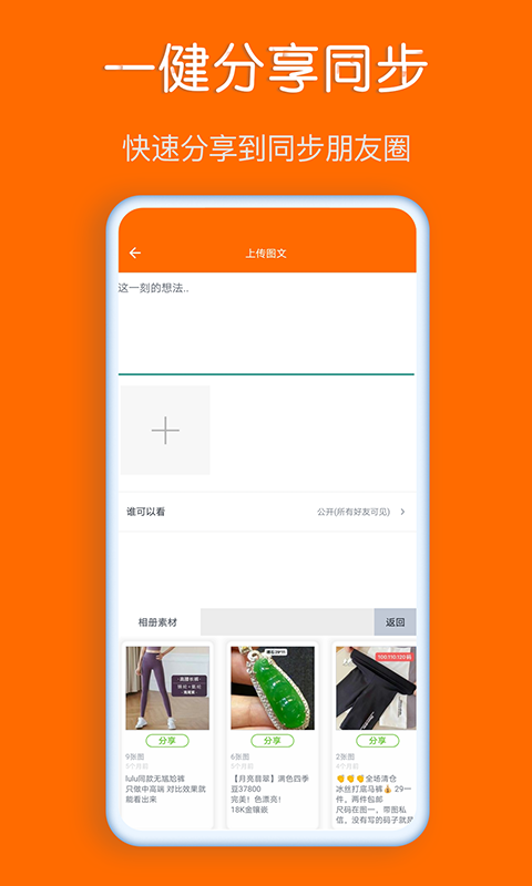 微商人专用输入法,提高发朋友圈相册,节省时间和效率。同时解决发朋友圈折叠。适合微信朋友圈、私域电商等社交场景的素材共享。一键将素材图文快速分享到朋友圈且有效解决朋友圈折叠成1行。
