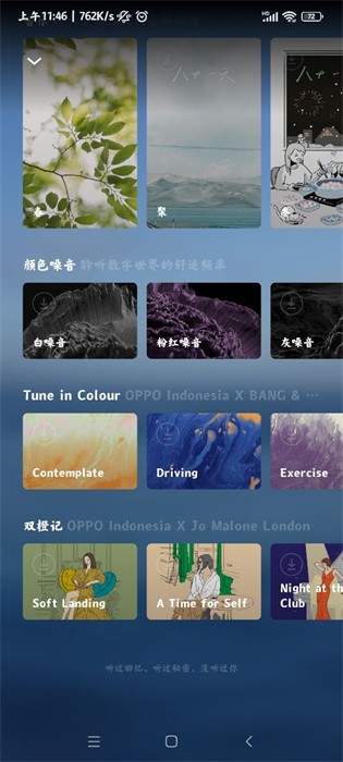 oppo Relax安装包,一个全新的白噪音助眠软件,平台上有大量舒缓的音乐提供给大家,可以有效的帮助大家平心静气,释放内容的压力,从而顺利入眠,超级的方便好用,对于打造健康体魄也有着很大的帮助哦,有需要的朋友快来下载用起来吧~