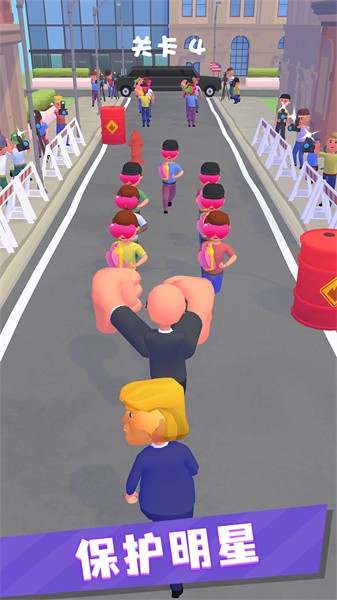 这款游戏听起来挺有意思的,特别是当你扮演保镖的角色,保护名人穿越疯狂粉丝群的时候。画面干净清晰,玩法结合了跑酷和闯关,既考验反应力又充满乐趣。你可以用大拳头打退挡路的人,护送名人安全到达目的地。游戏里还有各种武器可以解锁,模式也挺多,不会觉得无聊。