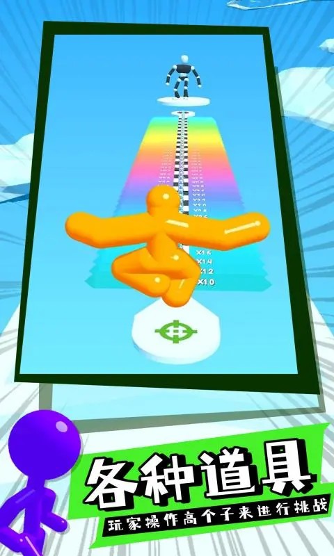 巨人冲冲冲,操纵一位粘液小人在笔直的赛道上奔跑,一路上会有许许多多的道具和陷阱,玩家需要避开那些有害的东西,拾取跑道上的有益物品,不断的前行、破除障碍,一步步变得巨大,完成跑酷闯关,感兴趣的玩家可以下载体验!