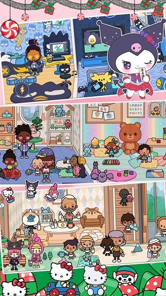 快来与6个场所的34个角色打招呼吧!去商场购物,去美食公园吃点东西,或者邀请朋友们来你的阁楼坐坐。角色们和他们的物品可以轻松在不同场所之间转移。