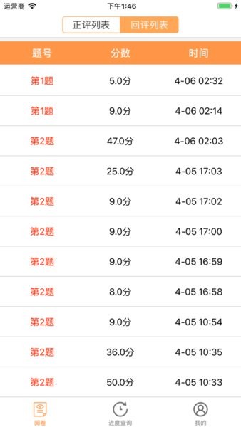 实时记录教师的阅卷进度,同时可以查看其他教师的评阅进度。