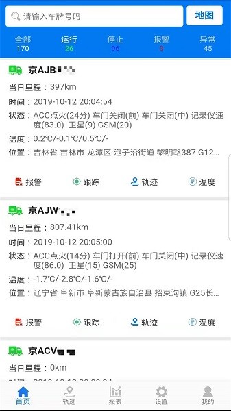 ・点击跟踪,能够在地图上查看该车当前所处的位置