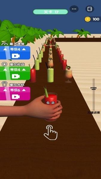 这个游戏最大的特点就是关卡多,而且难度逐渐增加,一开始玩可能觉得简单,但后面的障碍和挑战会让你手忙脚乱。操作上主要是滑动手指控制水杯左右移动,考验反应力和技术,尤其是要避开障碍物的时候,真的需要全神贯注。