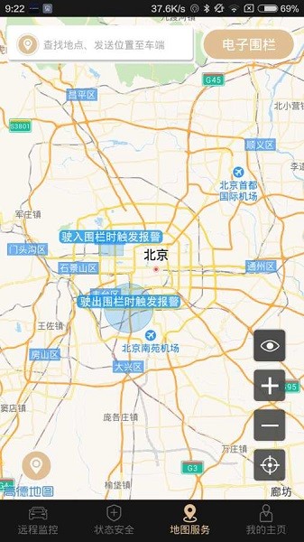 2、提供了地图服务,自动通过地图显示车辆的位置信息,也支持路线导航;