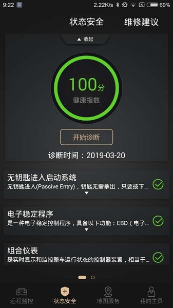 5、一键即可开始车辆体检,自动检测车辆问题,并显示体检报告;
